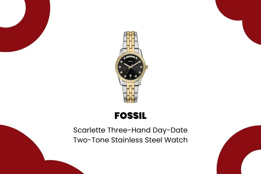 Bagi yang menyukai tampilan bersih dan elegan, Fossil Scarlette Three-Hand Day-Date Two-Tone Stainless Steel Watch 34mm adalah pilihan yang sulit untuk diabaikan. Desain two-tone-nya memberikan fleksibilitas tinggi, cocok dipakai dengan blazer di hari kerja, sama nyamannya dengan outfit kasual di akhir pekan.