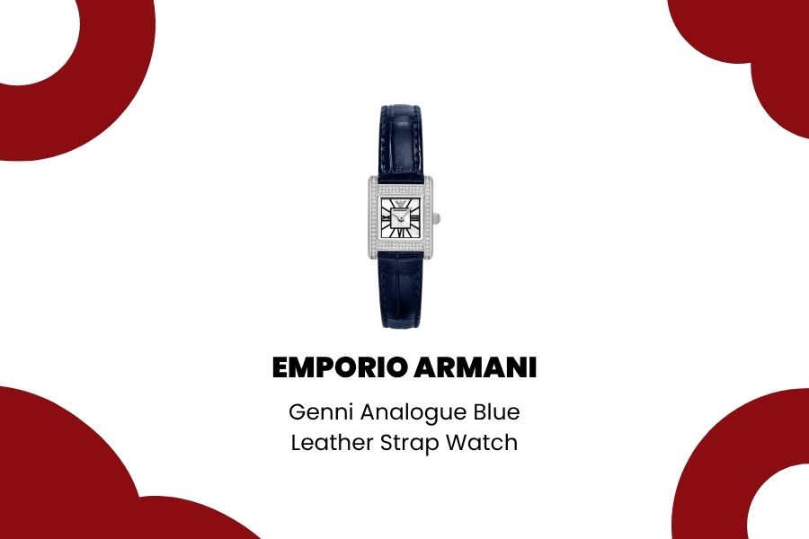Sementara bagi perempuan yang lebih suka karakter dan nuansa yang lebih hangat, Emporio Armani Genni Analogue Blue Leather Strap Watch dari Armani hadir dengan tali kulit biru yang lembut namun tetap punya pernyataan. Warna biru yang tenang mencerminkan kedalaman — persis seperti perempuan yang tidak perlu berteriak untuk didengar.