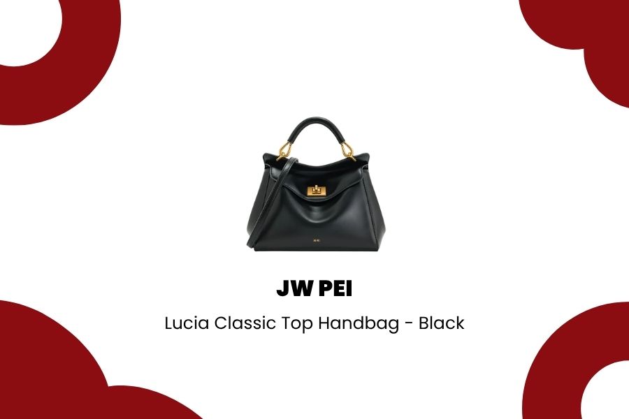 JW Pei Lucia Classic Top Handbag Black adalah jenis tas yang melampaui tren. Siluetnya klasik, warnanya tak lekang waktu, dan cara ia disandang memberikan kesan seseorang yang tahu ke mana ia akan pergi. Ini adalah tas untuk perempuan yang tidak perlu banyak bicara untuk membuat orang memperhatikan.
