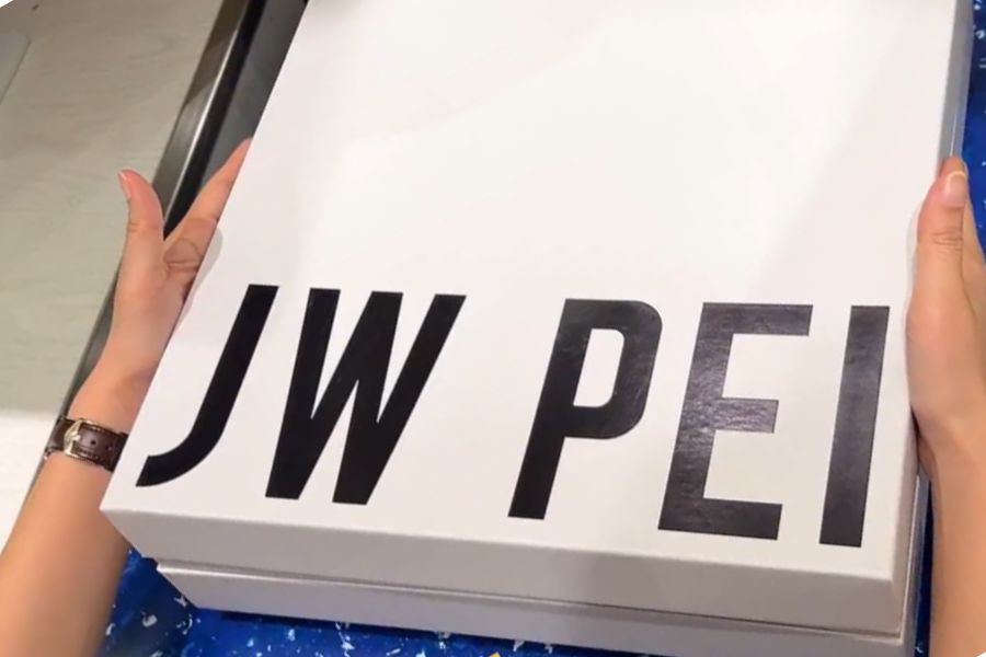 Packaging original juga punya detail finishing yang rapi seperti embossing logo atau texture khusus. Semua elemen desain terlihat profesional dan high-end. Tas dikemas dengan rapi menggunakan dust bag original dari JW PEI.