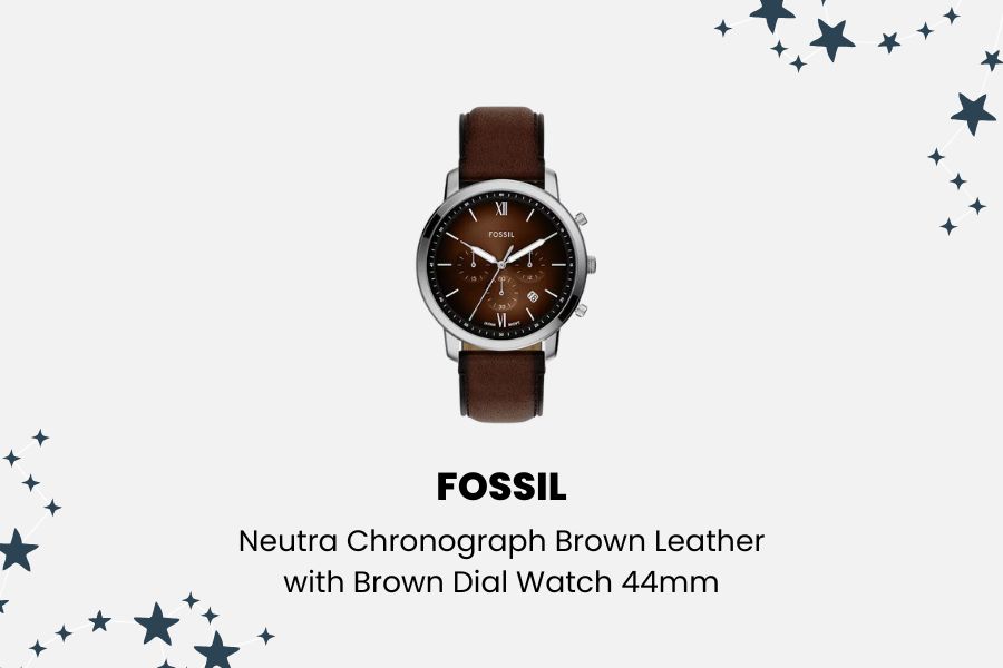 Untuk melengkapi gaya sehari-hari yang sophisticated, Fossil Neutra Chronograph Brown Leather with Brown Dial Watch 44mm FS6143 adalah jam tangan yang sempurna! Warna cokelat dari tali kulit dan dial selaras dengan warna keberuntungan Capricorn yang melambangkan stabilitas dan keandalan.